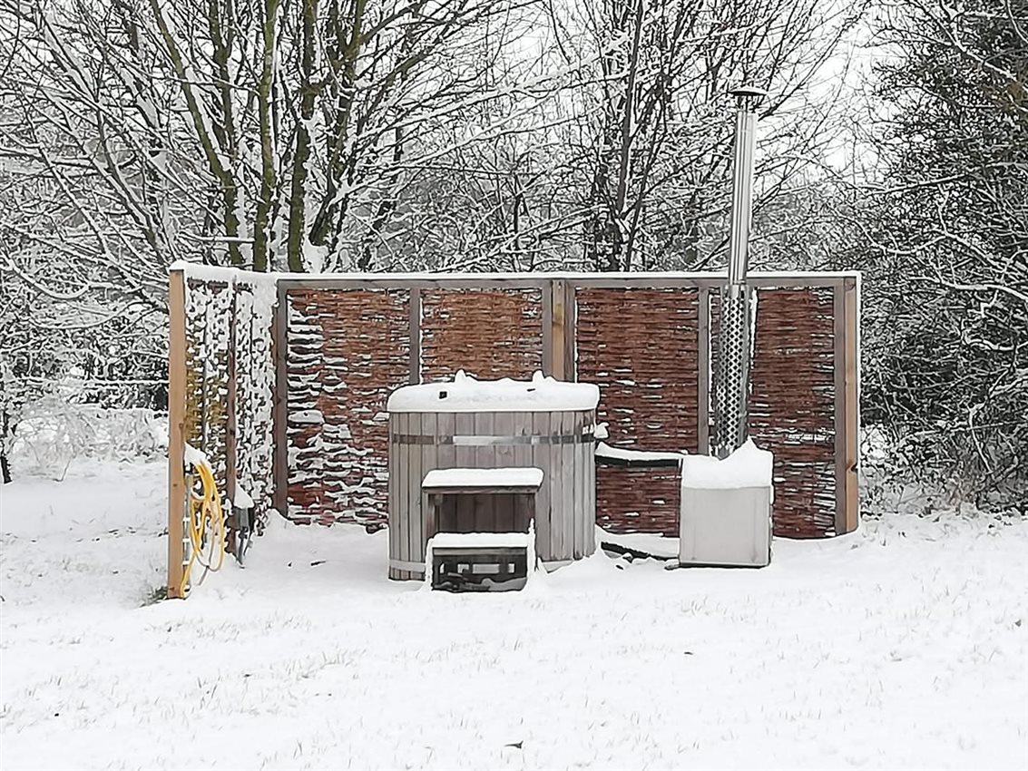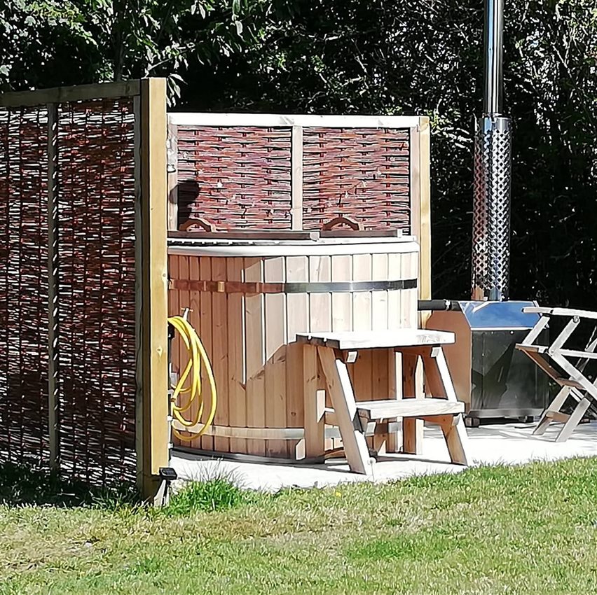 Lie back and relax in a heavenly wood-fired hot tub